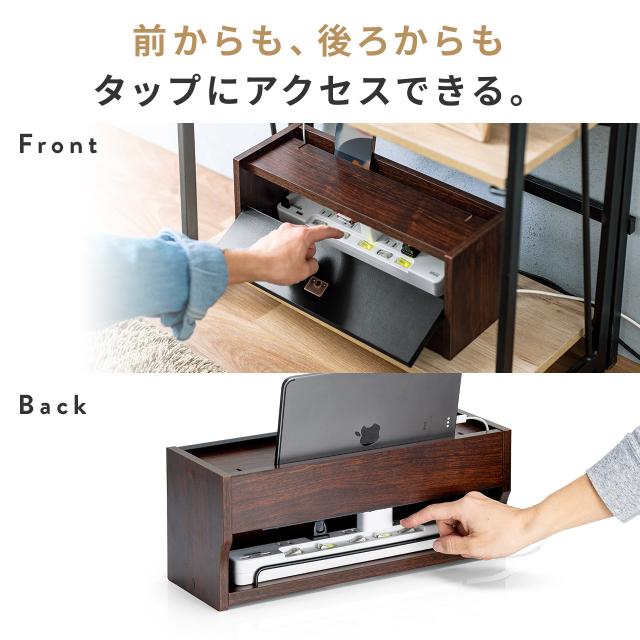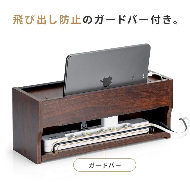 小型 ケーブルボックス 木製 電源コード 電源タップ ケーブル収納 スマホスタンドつき[200-CB036]