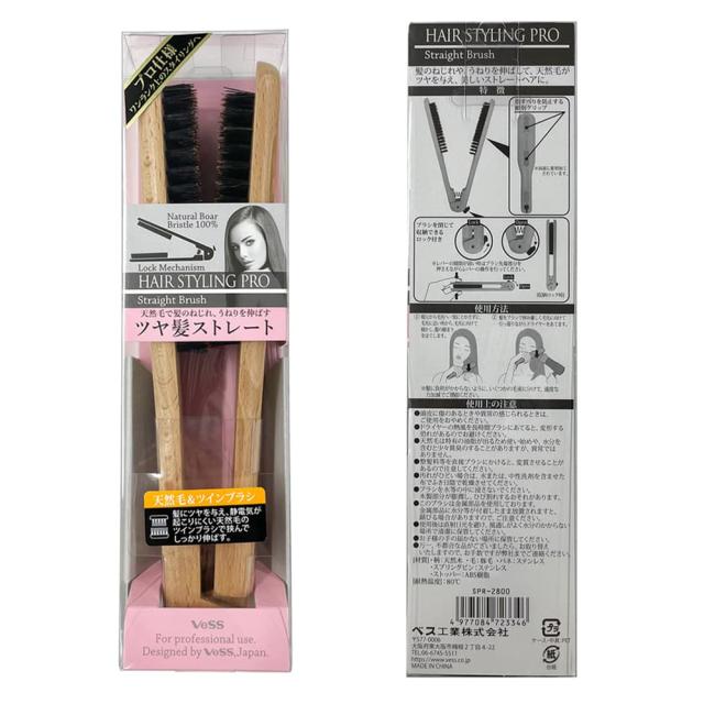 ヘアブラシ 豚毛 ストレートブラシ 天然豚毛ブラシ 髪に優しい 静電防止 美容 プレゼント プロ仕様 ベスVeSS S-60 SPR-2800