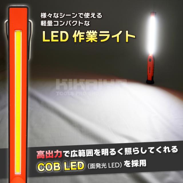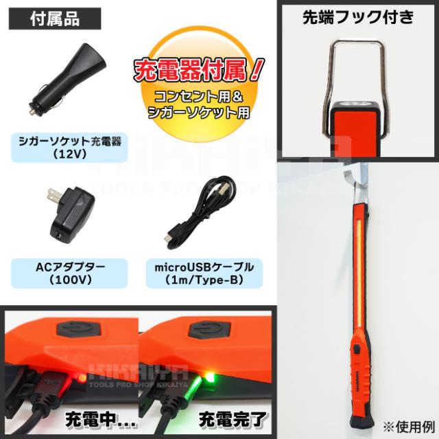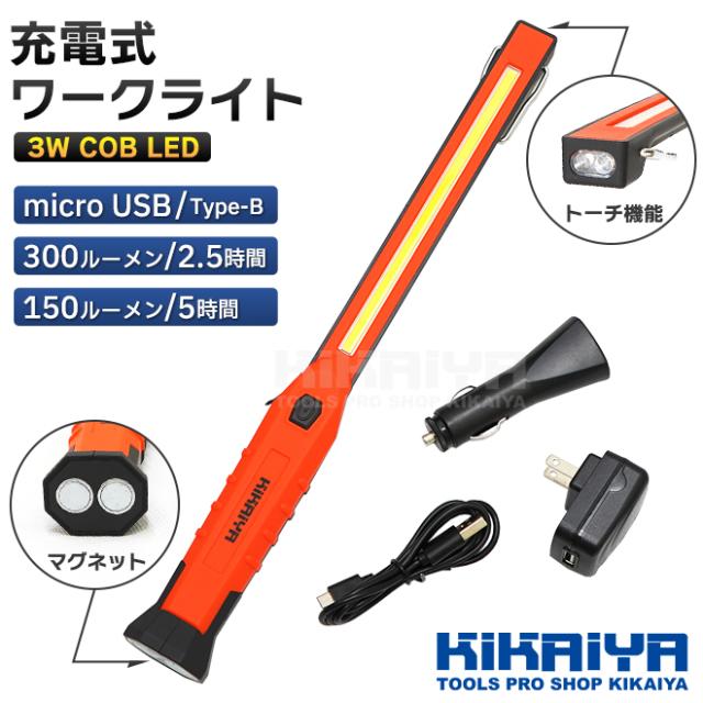 ワークライト LED 充電式 COB LEDライト 3W 軽量 スリム マグネット フック 吊下げ 作業灯 懐中電灯 防災グッズ 作業用 アウトドア KIKAIYA