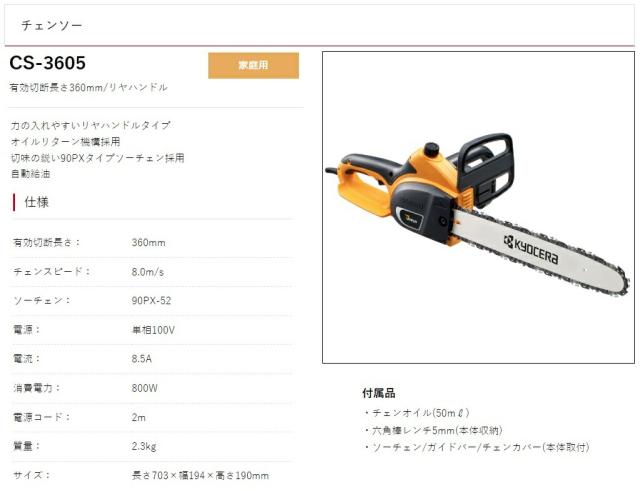 京セラ チェンソー CS-3605 リヤハンドル 有効切断長さ360mm KYOCERA リョービ