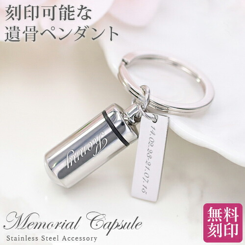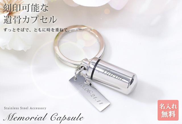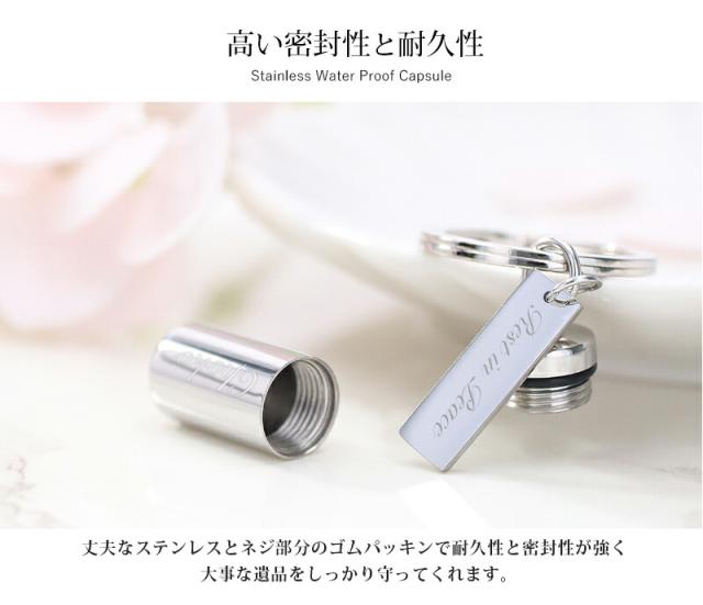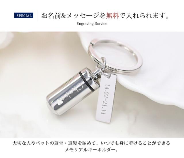 遺骨カプセル メモリアル キーホルダー 耐久性 密封性 刻印 名入れ 2ヶ所刻印 ミニ骨壷 ステンレス ペット キーリング ペットロス 犬 猫 ペット仏具 記念ジュエリー 刻印無料 オリジナル刻印
