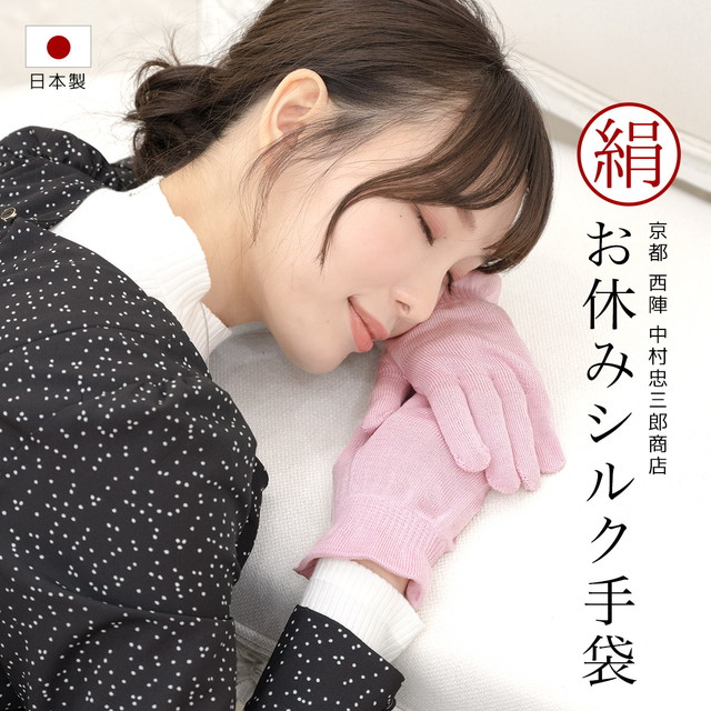 手袋 シルク シルク手袋 手荒れ 日本製 ハンドケア レディース 暖かい 中村忠三郎商店 保湿 おやすみ 生成り ピンク 黒 絹糸屋 uvカット メール便