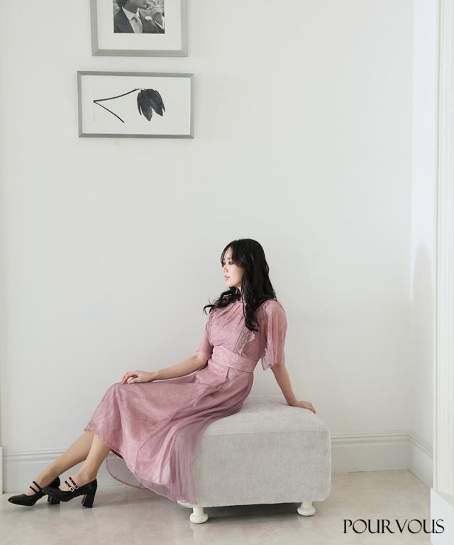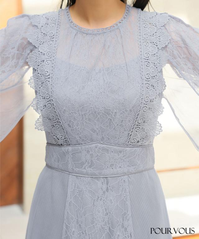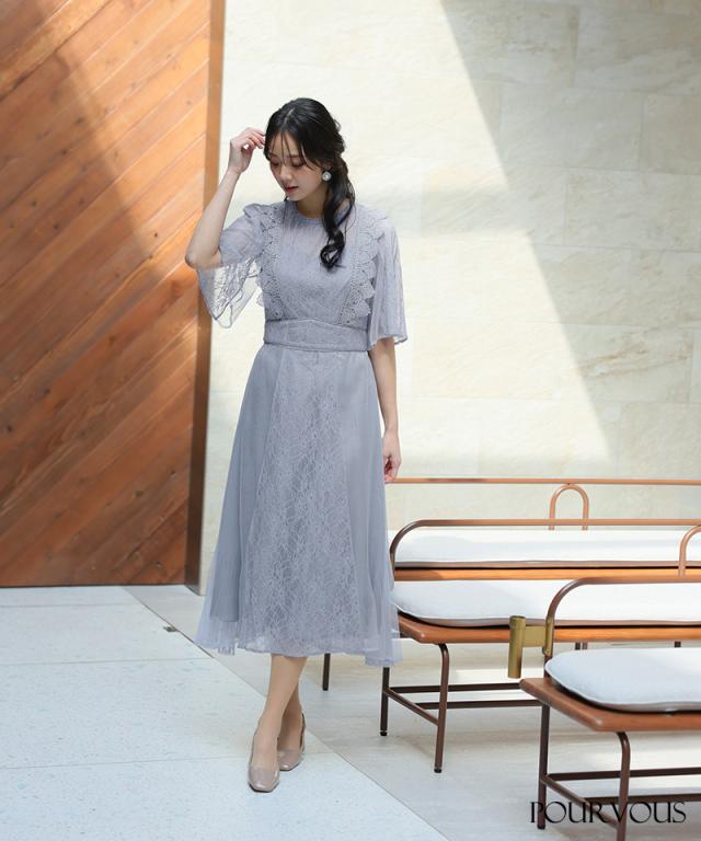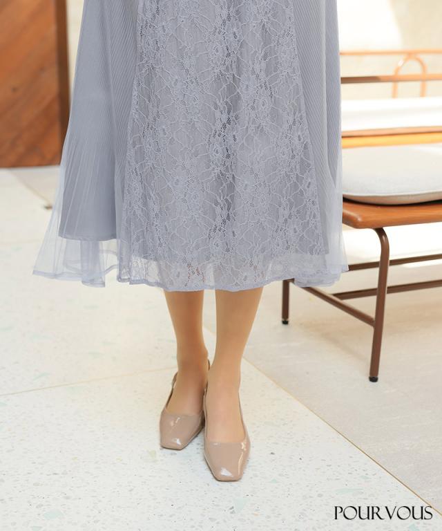 繊細なレース×細かいチュールプリーツが特徴的なワンピース