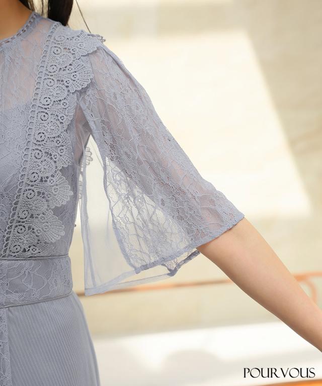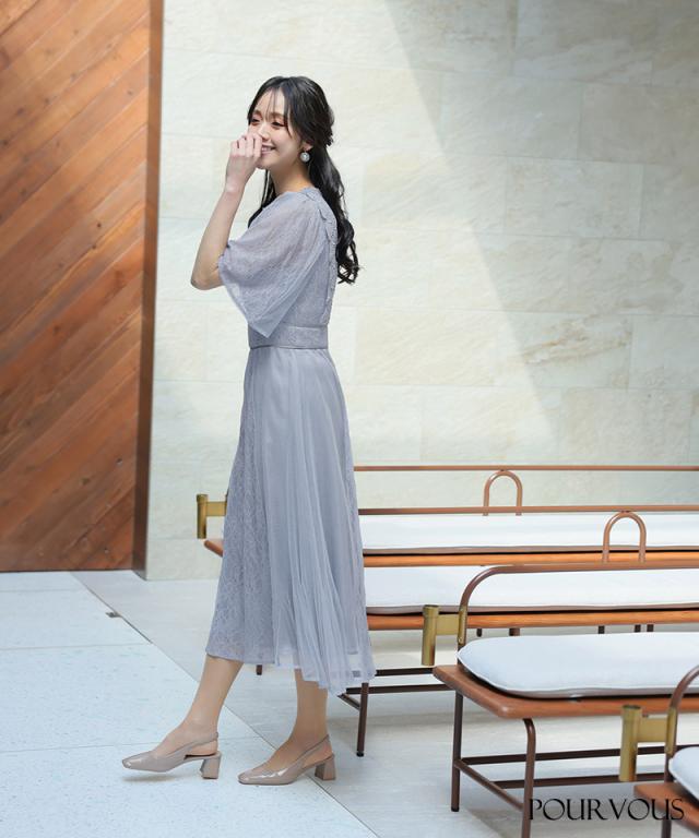 ウエスト部分の切り替えデザインや袖のレース生地でスタイルアップ効果も◎