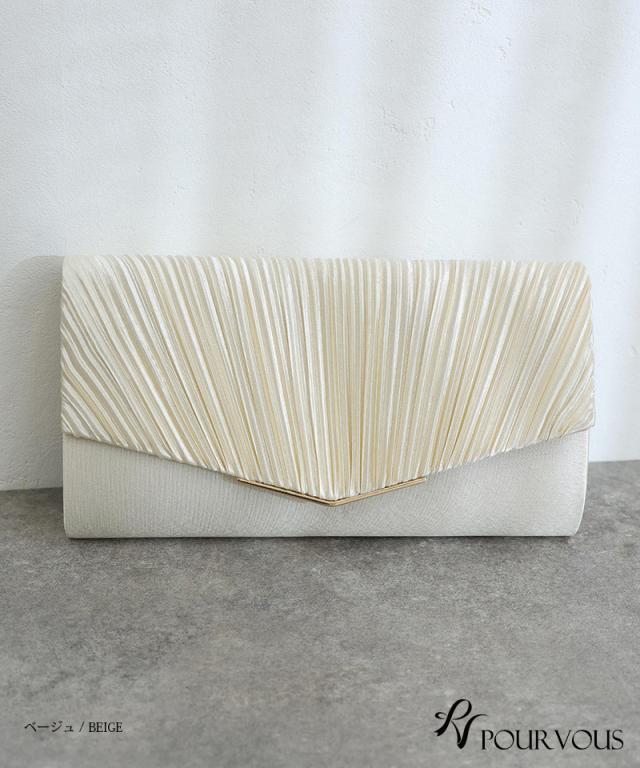 レター型プリーツクラッチバッグ【946212222】20代・30代・40代・50代パーティーバッグ・マグネット・フラワー・コサージュ・ストラップ・フォーマル・シンプル・サブバック付き・大容量・結婚式・二次会・同窓会・お呼ばれ・謝恩会・お宮参り・女子会・デート・入学式・卒業式・パーティー・冠婚葬祭