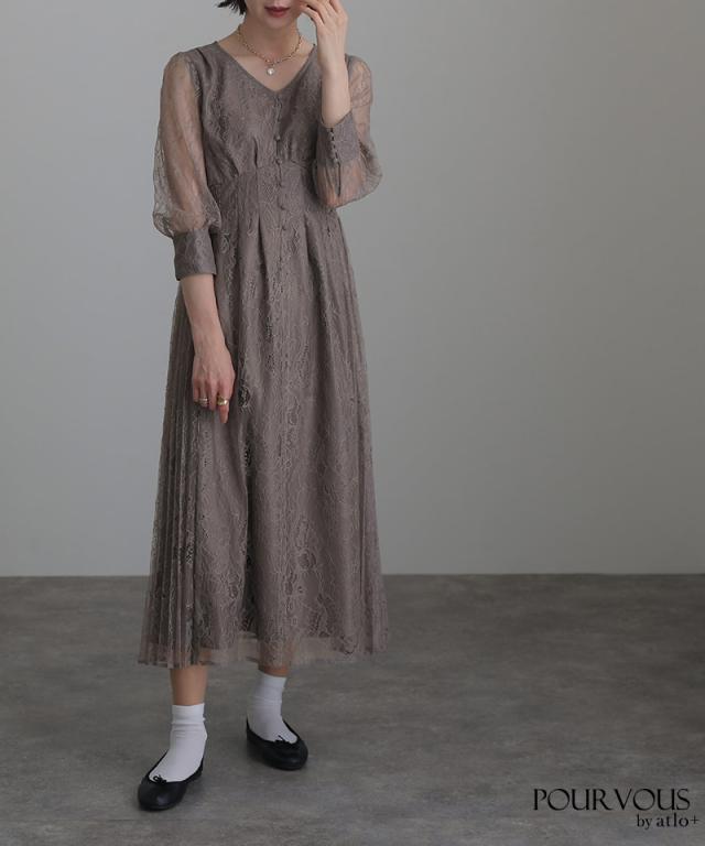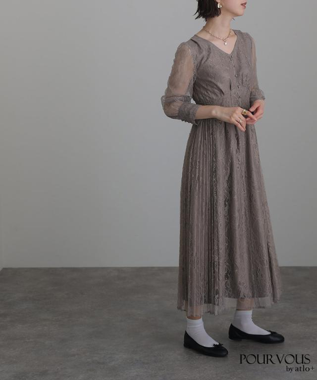 レースサイドプリーツシャツワンピース/ 907221110