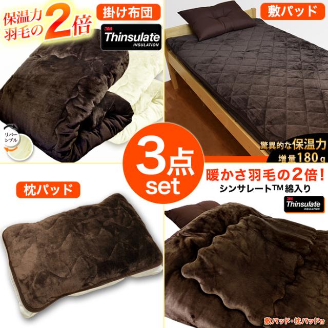 3点セット 布団セット シングル シンサレート 掛け布団 & 敷パッド 枕パッド エフテックヒート 保温 暖かい 洗える 清潔 抗菌 防臭 防カビ 防ダニ 布団カバーセット 北欧 収納 送料無料
