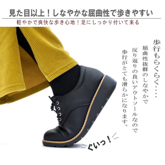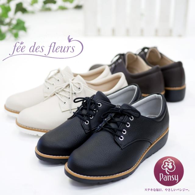 Pansy パンジー レースアップシューズ 靴 レディース 軽量 コンフォート ウエッジソール フェイクレザー 柔らかい 抗菌 防臭 歩きやすい 履きやすい 旅行 3e