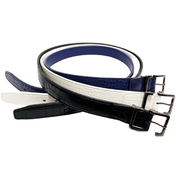 クロコ生地に、バックルには特徴のあるS字バックルを使用。