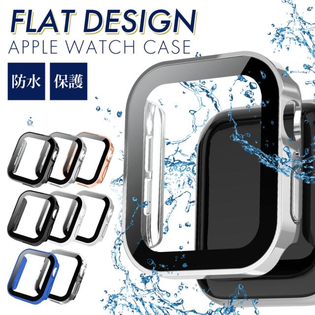 アップルウォッチ 防水 カバー フラットデザイン ケース 保護カバー キラキラ 40mm 44mm 41mm 45mm シリーズ se 4 5 6 7 保護ガラス 全面保護 フラット 液晶 ガラス レディース メンズ かわいい おしゃれ シンプル