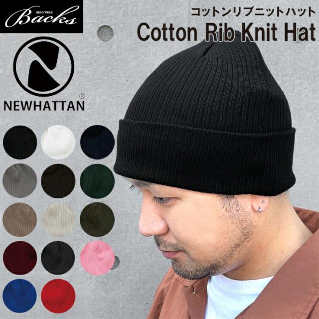 リブニット ニット帽 コットン NEWHATTAN ニット ワッチ コットンワッチ メンズ レディース ニューハッタン 綿 ビーニー お洒落 ショートワッチ フリーサイズ