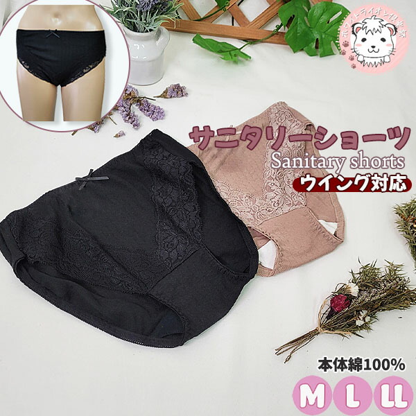 サニタリーショーツ ウイング対応 綿100% ショーツタイプ 生理用ショーツ M/L/LL | レディース ジュニア 生理パンツ 羽根付き対応 サニタリー ストレッチ