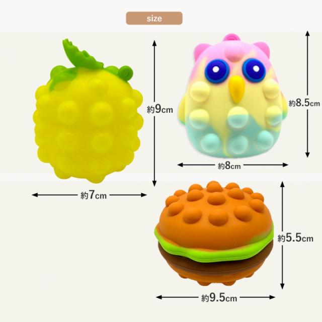 | 主な仕様 | ●商品内容: Youtubeで話題のぽちぽち 立体版 ●種類: 商品画像を参考にご選択ください ●素材: シリコン |
