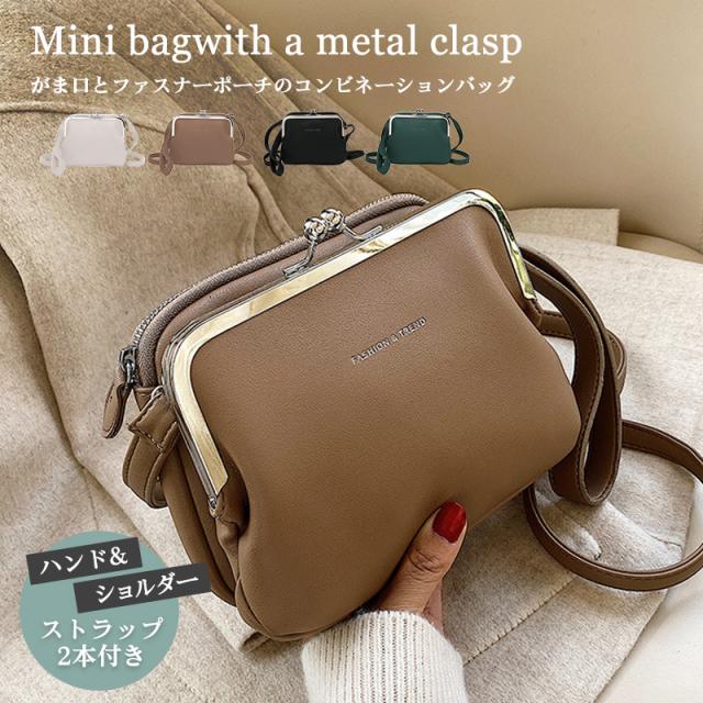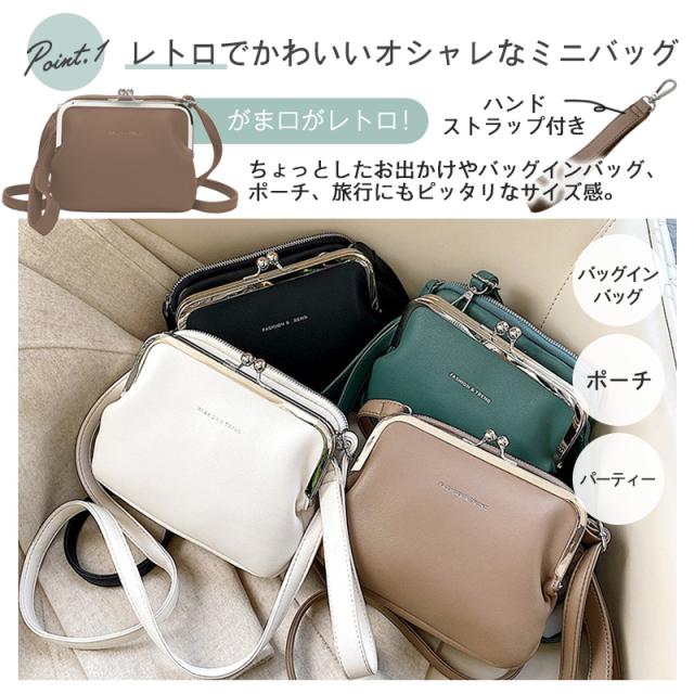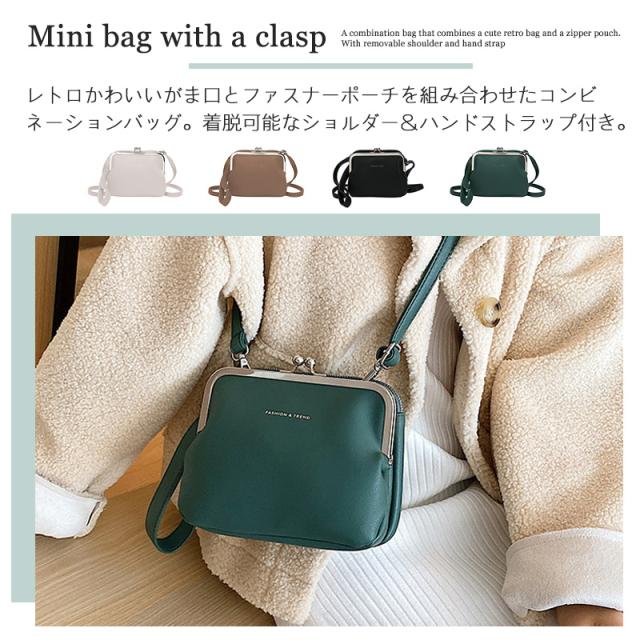 がま口バッグ がま口 ミニ バッグ ショルダーバッグ 鞄 ショルダー ハンド ポーチ エコレザー 収納 レトロ シンプル トレンド 韓国ファッション レディース