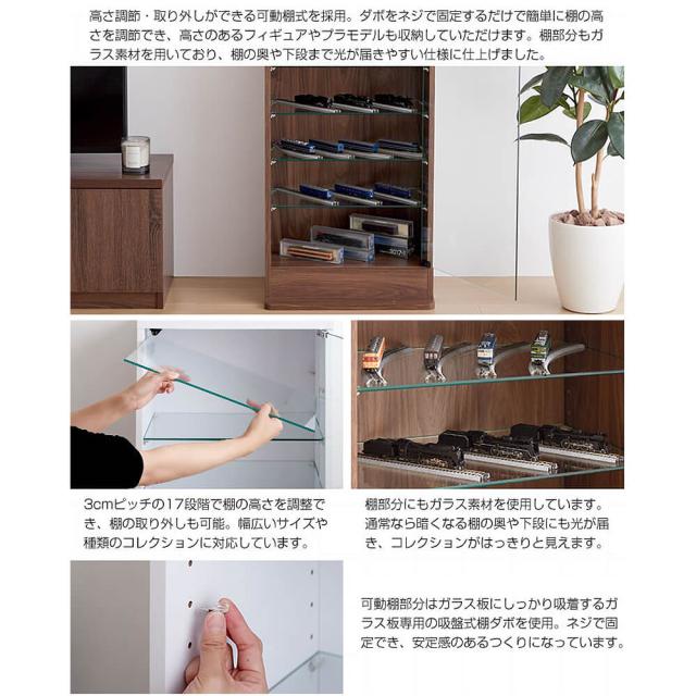 ガラス扉収納で埃や汚れからコレクションを守ります。艶のあるガラスなので、より美しく上品に魅せます。