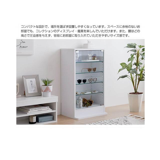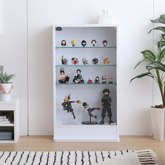 高さのあるフィギュアやプラモデルにも。棚部分もガラス素材なので、棚の奥谷下段まで光が届きやすい仕様です。