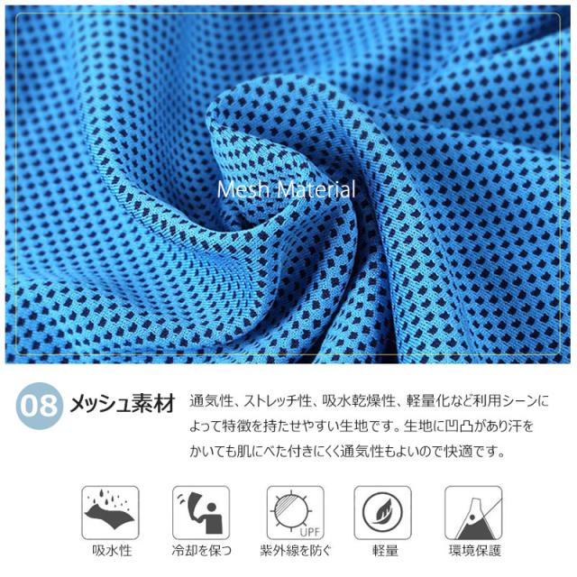 ・紫外線対する防御率は約98%、UPF50+で屋外で冷却タオルで肌を守れます。