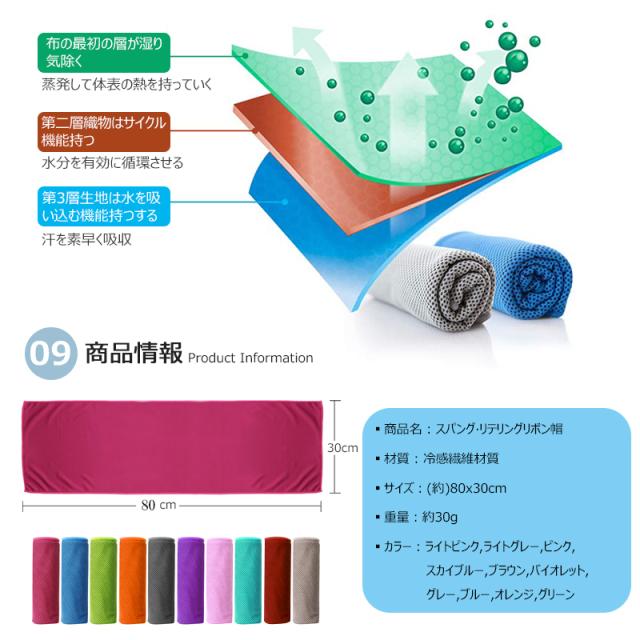 - 注文番号【729001255】以前買った時に無かったカラーがありましたのでリピート買いです。それと、今の夏の季節、枕カバーの上から、こちらの冷却タオルをひいて寝たところ、とても涼しく眠れたので、その意味も含めて使い勝手が良い冷却タオルです。