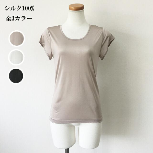 レディース シルクフレンチ袖 インナー 女性用 下着、肌着 3色 (マリーネ)