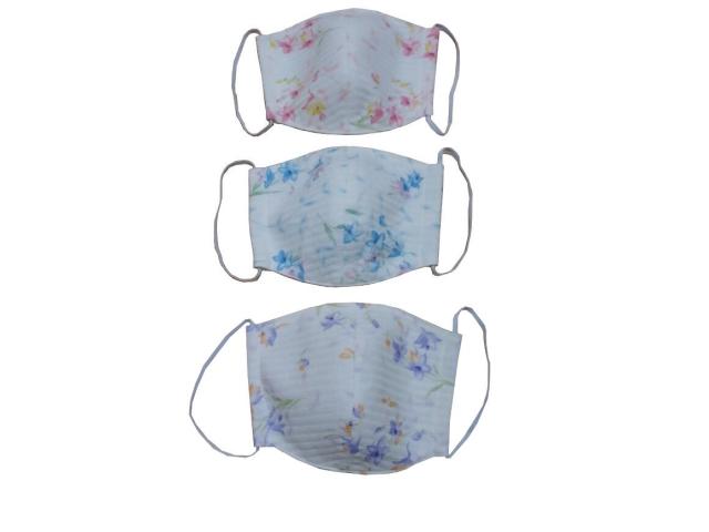 薄手のニット素材 マスク 立体裁断 (洗えます) 綿100% 日本製(和歌山)花柄 ピンク、パープル、サックス、 天竺素材と不織布の4層構造になっています(この商品のラッピングは承っておりません)