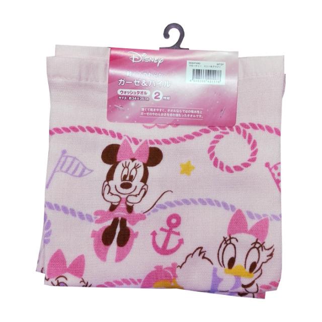 ガーゼプリント ウォッシュタオル 2枚組 約34cm×35cm 綿100% フローティー 【ミニー&デイジー】