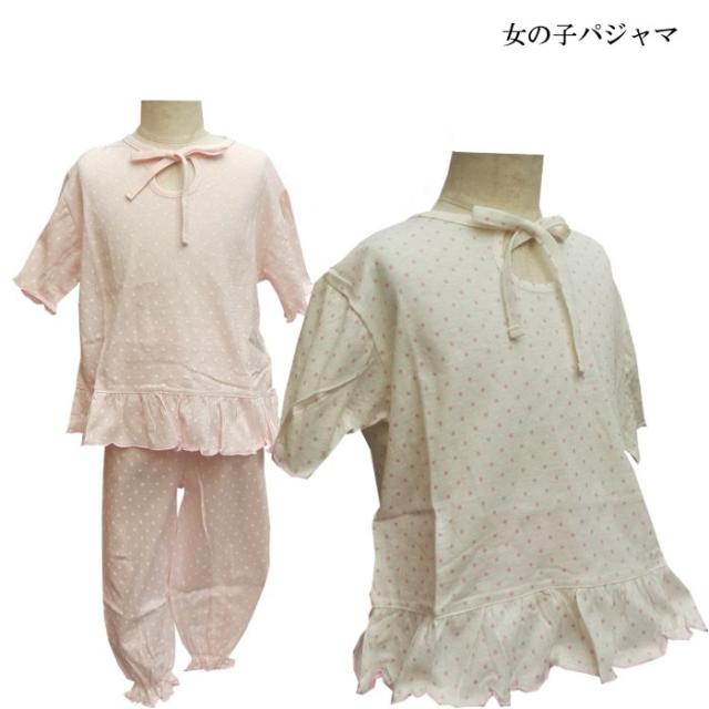 女の子 パジャマ 【ドット柄】【夏】白・ピンク 天竺素材 やわらかい肌触り 綿100% 半袖・長ズボン ナイトウェア 100cm〜150cm ゴム取替口付 キッズ 子供 子ども こども 【日本製】