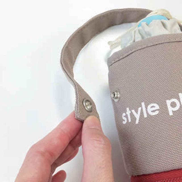 ボトルカバーの持ち手にはスナップボタンが付いています。手で持ち運ぶだけでなく、鞄の持ち手などにも装着できるので持ち運びの際に便利です。