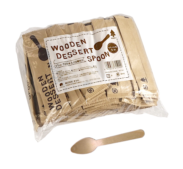 木製デザートスプーン クラフト紙完封 11cm 100本入