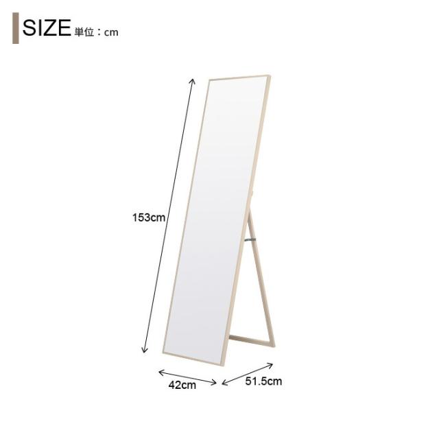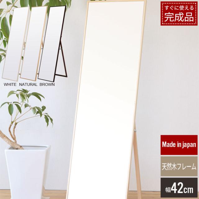 【値下げ】スタンドミラー 全身 姿見 おしゃれ シンプル 人気 飛散防止 天然木 細枠 42cm