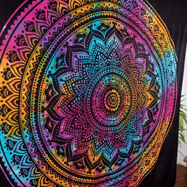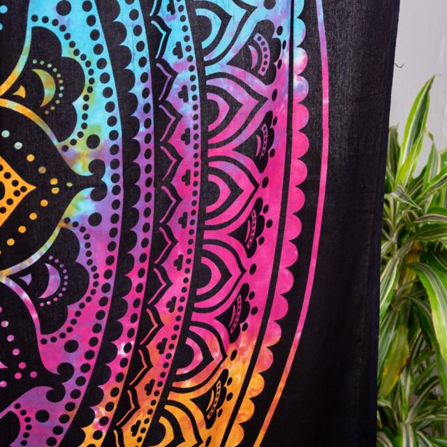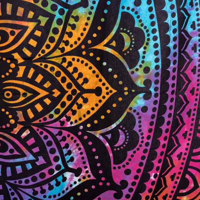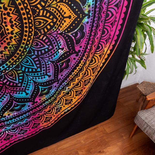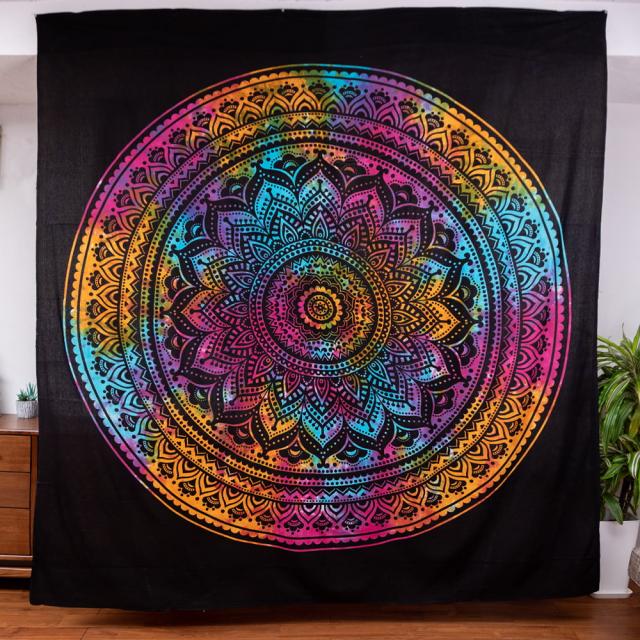 マルチクロス マンダラ ホーリーカラータイダイ染め〔約223cm×約205cm〕 / タペストリー テーブルクロス ベッドシーツ 大きなこたつカバー ベッドカバー ソファーカバー マルチカバー 目隠し布 壁掛け布 背景布 アジア インド ファブリック エスニック