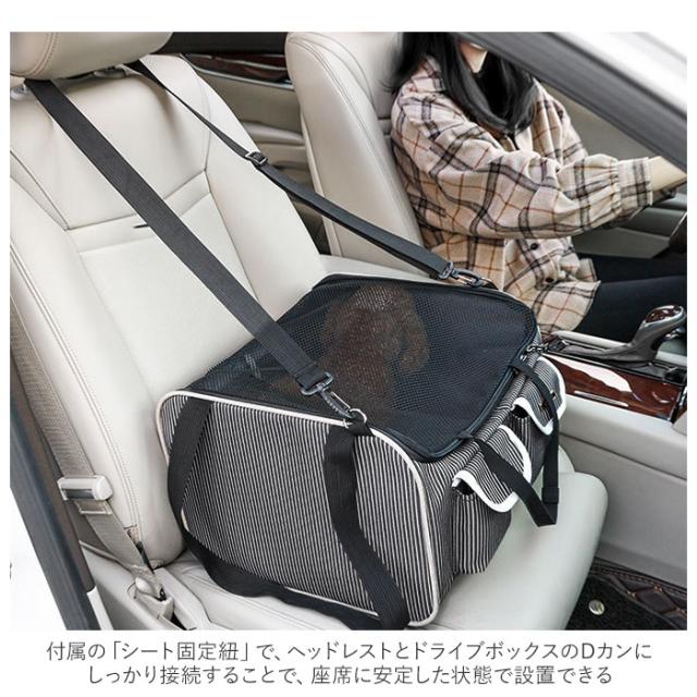 | 商品説明 | ・車での移動中も、ゆったりサイズでワンちゃん快適!大人気ペットグッズに、「ペット用ドライブボックス」が仲間入り。 ・付属の「シート固定紐」を使用し、ヘッドレストとドライブボックスのDカンにしっかり接続することで、座席に安定した状態で設置できるからとっても安全! ・ワンちゃんの首輪に繋ぐことのできる「飛び出し防止リード」付きなので、飼い主さんは運転に集中◎元気なワンちゃんが動きまわっても大丈夫! ・さらにボックス天井部分は、コの字型ファスナーで大きく開くメッシュ屋根付き。屋根を開放しておくときは、ゴムバンドでヘッドレストに固定するか、くるくると丸めて面ファスナーで留めておくことも可能。 ・通常のペットキャリーに比べ、ワンちゃんが快適に寝そべることのできる広々設計。付属の支え棒2本を面ファスナーで貼り付ければ、ボックスがへたらずより快適な空間に。 ・ボックス前面のマチ付きポケット×2、側面のメッシュポケット×2に、ペットシーツやマナーウェア、おやつ用のフードなどを入れておくと便利。 ・底面クッションパッドは、内側のクッション材と中板を外せば、お洗濯もできて、いつでも清潔! ・持ち手ハンドル付きなので、動物病院への通院やお出かけ時にはペットキャリーにもなる2WAY仕様! ・使用しないときは折りたたんで厚みを抑えればとってもコンパクトサイズに!場所をとらず、ちょっとした隙間にも収納できるのが嬉しいポイント。 |