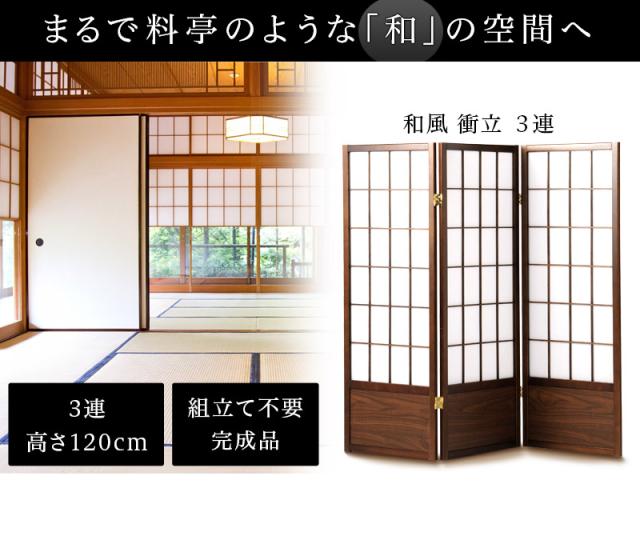 衝立 高さ120cm 3連衝立 パーテーション おしゃれ 和風 障子風 衝立 座敷 オリエンタル おしゃれ 和モダン アジアン和風 木製 ついたて ウッドフレーム L字 パーテーション スクリーン 自立 シェード 家具 新生活 組立不要 助成金 補助金 給付金