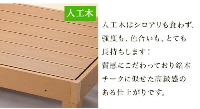 補足説明:特殊加工で製造した樹脂デッキ用コーナーパネルです。ウッドデッキ ウッド風に仕上げた色合いは、人気で高級感のある銘木チークに似せました。ベンチ代わりの休憩のスペースや、ペット同伴可のカフェテラス、簡易ステージなど、業務用としても展開できます。腐食の進行がとても遅く強度も長持ちします 木材のようには腐らない、金属でないから錆びない(組立接続部分には金属ネジを使用しています)、特殊加工で製造した樹脂デッキ シロアリなどの心配も無用、雨に濡れても錆びない、そして1台に大人が10人乗っても大丈夫な強度で長く使えます。重たいところがGOOD強風対策もバッチリ。耐光性も高いので、庭先の縁台に、おしゃれなお庭作りに最適です。お庭に合わせて自由に配置できますので、思い通りのレイアウトが可能。シリーズの柵パネル(ガード・手すり)やステップ台(踏み台)でより安全におしゃれなデッキに。玄関口や窓周り、洗濯物干しスペースなどに段差がある場合は特におすすめのです。のんびりオシャレに、人を呼びたくなる新たな生活スペースをあなたも作ってみませんか。リラックスできるお庭作りにエントランス ガーデン 飲食店にもお勧め カフェテラスで優雅なひと時を過ごす ロータイプ 高齢者や小さなお子さん 小型犬にも ペット 愛犬のペットも嬉しいウッドデッキ エクステリア 室外 アウトドアやDIYが好きな方に ウッドデッキ、縁台、ぬれ縁、人工木材 ロータイプウッドデッキ、人工デッキ、樹脂 ベランダ、えんがわ、ベンチ、庭先、段差 人工木のウッドデッキ、腐りにくい、人工木は錆びない 錆びにくい、色褪せにくい、しっかり、テラス アイウッド、ガーデニング、バーベキュー、人工木、DIY 手すり、ガード、ステップ、踏み台、玄関台、スリッパ ひなたぼっこ、休憩、太陽、物干し竿、エントランス、頑丈 ウッドパネル、リフォーム、バルコニー、エクステリア 本体1台は90cm幅0.25坪、デッキセット、常温常湿、メンテナンスが楽、水洗いOK、組み立て簡単、ウッドテラス