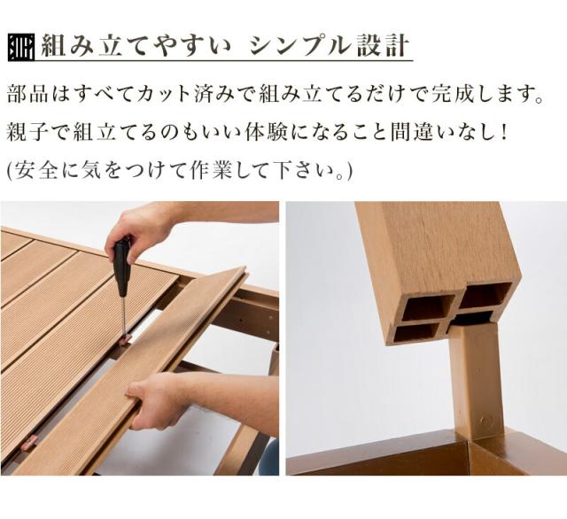 | 人工木ウッドデッキ用のコーナーパネルです。お庭へ出るのが楽しくなるウッドデッキ。特殊加工で製造した樹脂の人工木で、劣化がとても遅くお手入れも簡単で便利です。ロータイプなので地面までの距離も短く、小さなお子さんも上り下りしやすく安心です。1台に10人乗っても大丈夫な強度。低価格の天然木ウッドデッキ・縁台もありますが、長期的に見れば手間とメンテナンス代がかからない人工木製の方がコスパが高いのでお勧めです。 |