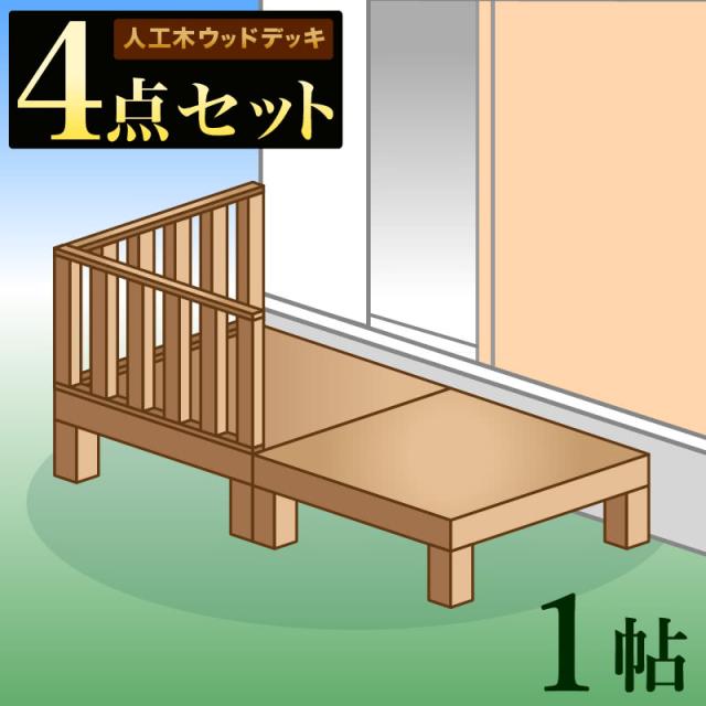 ウッドデッキ 人工木ウッドデッキ 4点セット 1帖 0.5坪 ブラウン 人工木材 ウッドデッキ 腐りにくい 頑丈 丈夫 縁台 樹脂 デッキ ウッドデッキタイル 幅90cm 本体2台で幅180cm ロータイプ 低い ウッドパネル 送料無料