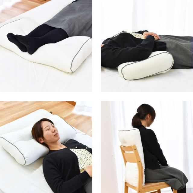 寝る人の気持ちを考えた、さまざまな用途でつかえる足まくら。足元に置いて寝る足まくらとしてのご使用いただけるだけでなく、寝るときの腰を支える腰まくらや、背もたれにあてるクッション、少し幅広のまくらとしてもお使いいただけます。