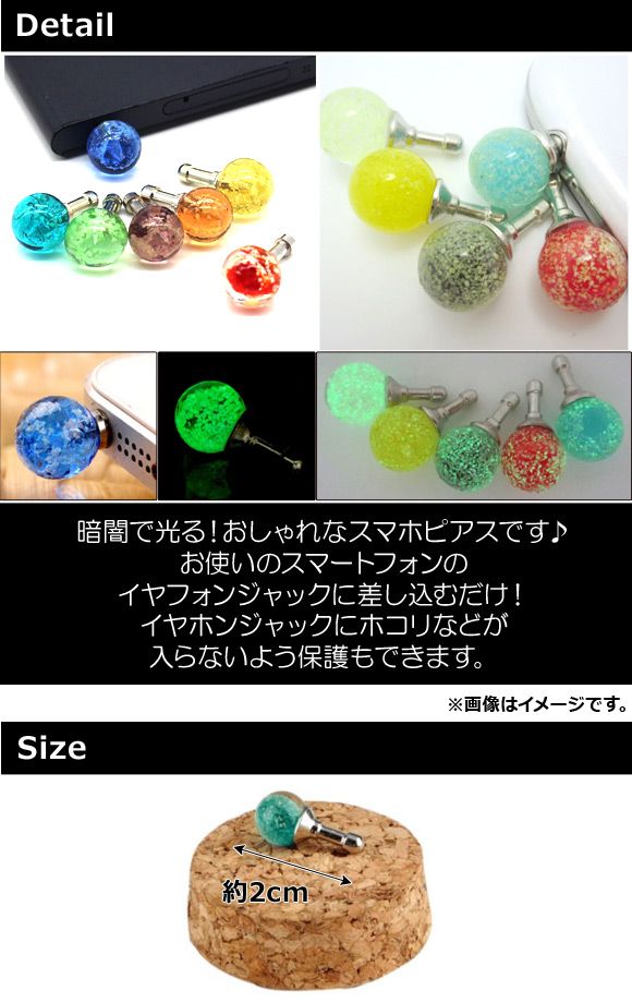 暗闇で光る! イヤフォンジャックに差し込むだけ! 簡単ドレスアップ♪
