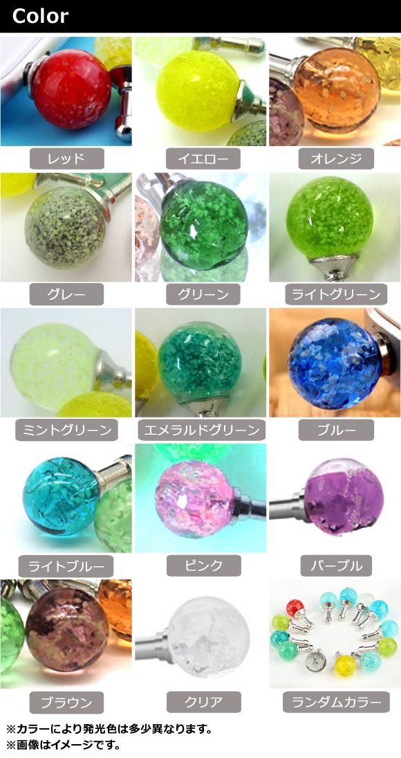 スマホピアス 暗闇で光る! イヤフォンジャックに差し込むだけ! 簡単ドレスアップ♪ 選べる15カラー AP-MM0015 カラー: レッド ブルー イエロー グリーン オレンジ パープル ピンク グレー ブラウン クリア エメラルドグリーン ミントグリーン ライトグリーン ライトブルー ランダムカラー