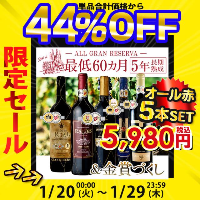 とっても贅沢!オールスペイン産の赤ワインに、さらに全て金賞受賞★そして注目は60カ月以上熟成(=グランレゼルバ)ばかりを集めた5本セット!