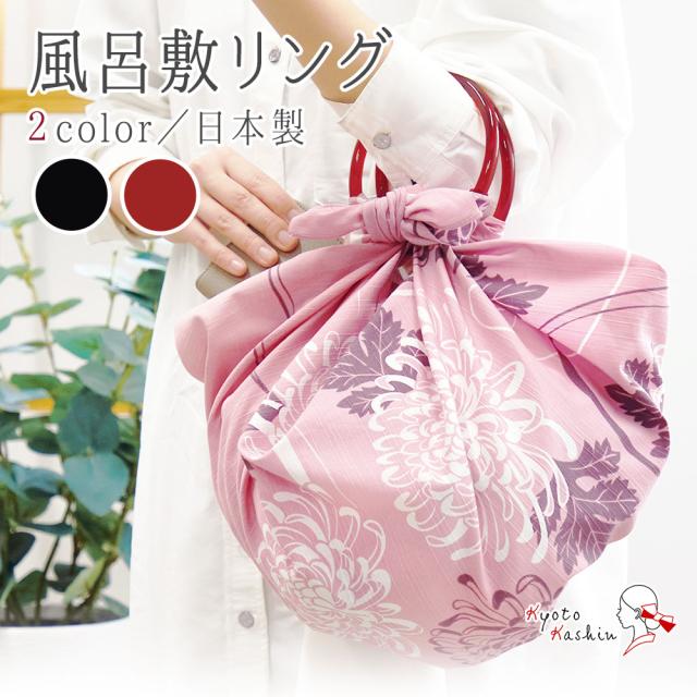 【2つまでメール便発送OK】風呂敷 リング 13cm 日本製 風呂敷リング バッグ ふろしき 持ち手 いちご リング コンパクト バリエーション 組み合わせ 自由 着物 浴衣 簡単 鞄 お洒落 かわいい 黒 赤茶 宮本株式会社 エコバッグ ショッピングバッグ