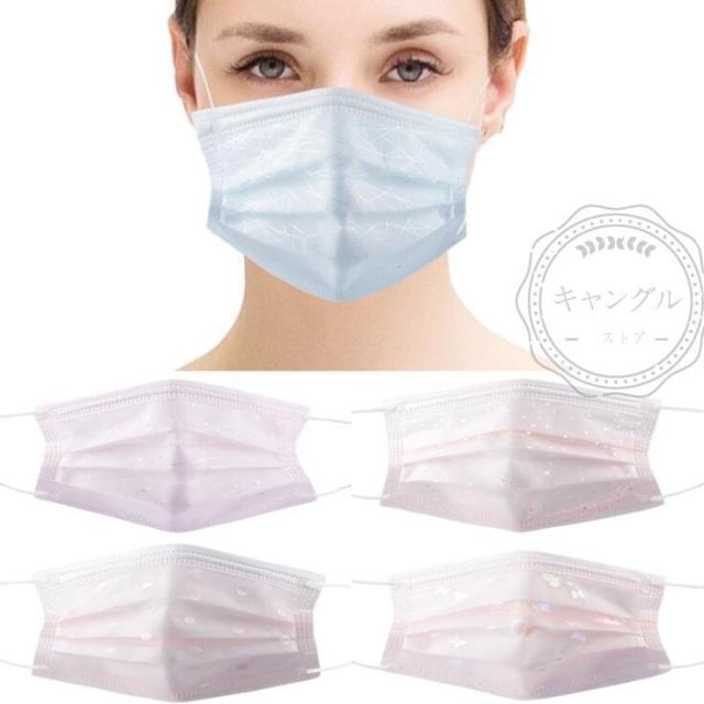 レースマスク 不織布 50枚 使い捨て おしゃれ 可愛い キラキラ 大人用 母の日 花柄 花粉対策 飛沫防止