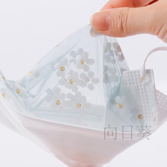 レースマスク 花柄 レディース 50枚 母の日 使い捨て チュール付き 不織布 花粉 かわいい お花見