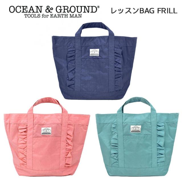 OCEAN&GROUND FRILL レッスンバッグ ナイロン 女の子 オーシャンアンドグラウンド フリル トートバッグ ピンク グリーン ミント ミントグリーン ネイビー 紺色 無地 子供 幼稚園 小学生 入園 入学 通園 通学 おしゃれ 小学校 保育園 おけいこバッグ お稽古バッグ