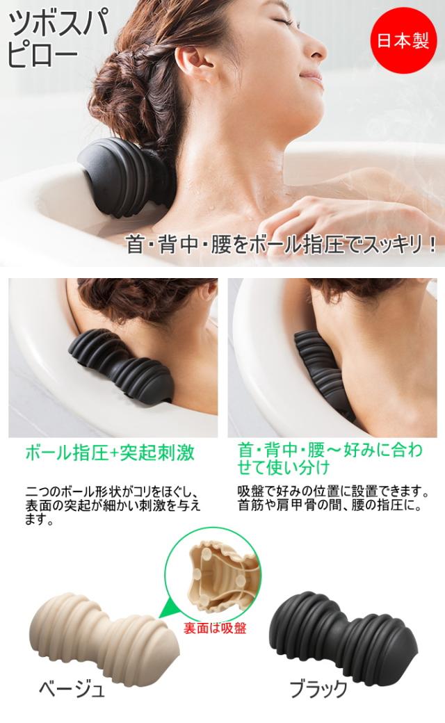 ツボスパ ピロー HB-105 日本製 癒し バスグッズ ケア マッサージ 刺激 お風呂 バスタイム バスタブ ツボ ツボ押し 首 背中 腰 吸盤 健康 健康グッズ