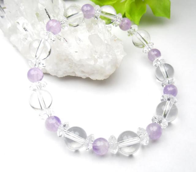 アメジストライトカラー&水晶 ブレスレット 天然石 パワーストーン b1ame026