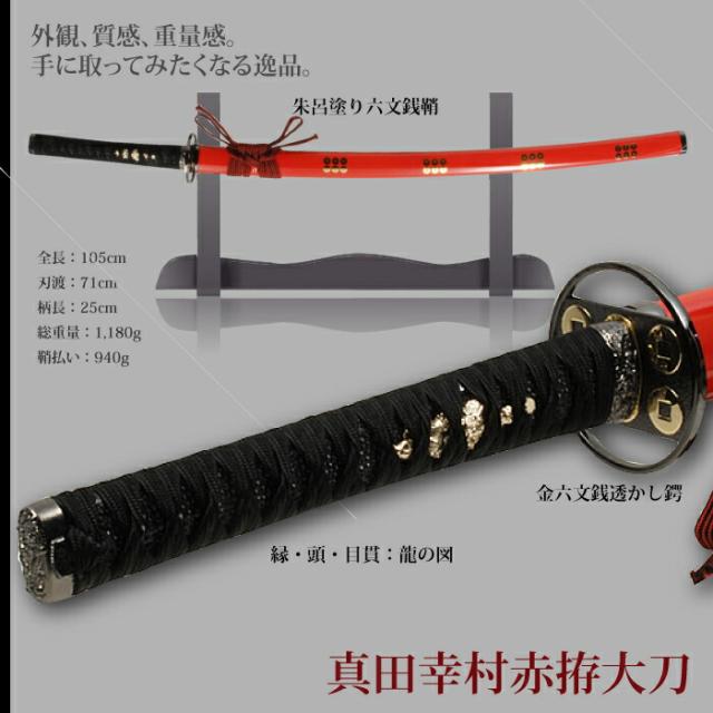 日本刀 真田幸村 赤拵 大刀 模造刀 鑑賞用 刀 日本製 侍 サムライ 剣 武器 レプリカ 幕末時代 おもちゃ お土産 おみやげ プレゼント 外国人 喜ぶ 新選組 新撰組 時代劇 稽古 芝居 お芝居 小道具 玩具 仮装 変装 コスプレ