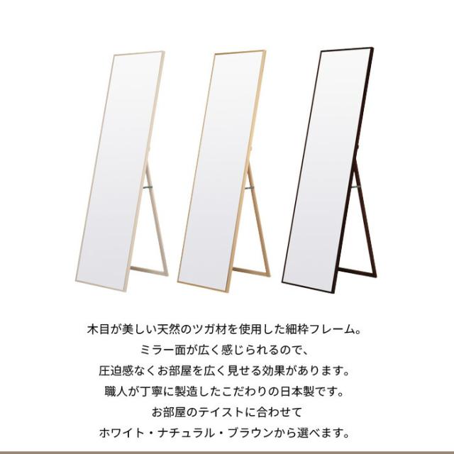 【値下げ】スタンドミラー 全身 姿見 おしゃれ シンプル 人気 飛散防止 天然木 細枠 42cm