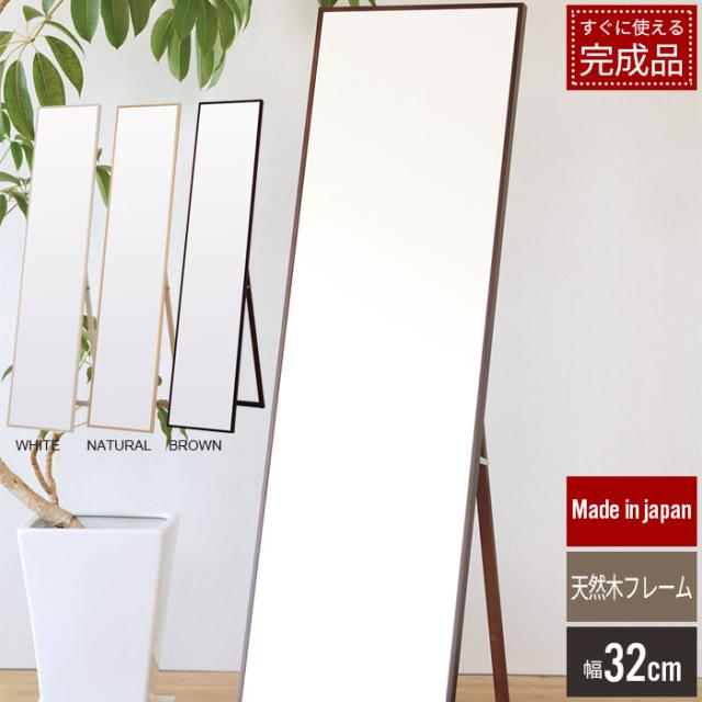 【値下げ】スタンドミラー 32 全身 姿見 おしゃれ シンプル 人気 天然木 飛散防止