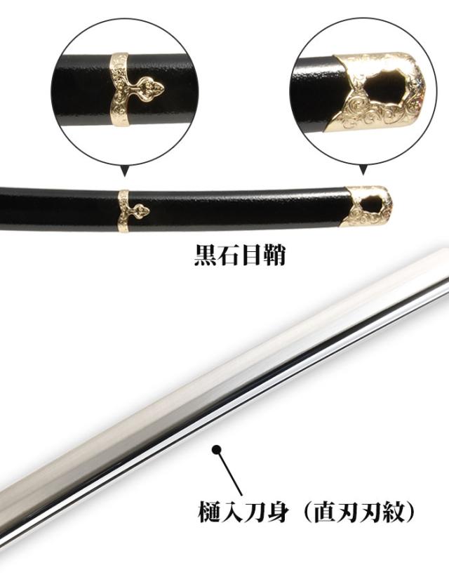 | ◇こちらの商品は模造刀となり真剣ではありません。 ◇刃紋が装飾として施されておりますが、実際には切れません。 ◇居合刀対応不可。観賞用としてお使いください。 |