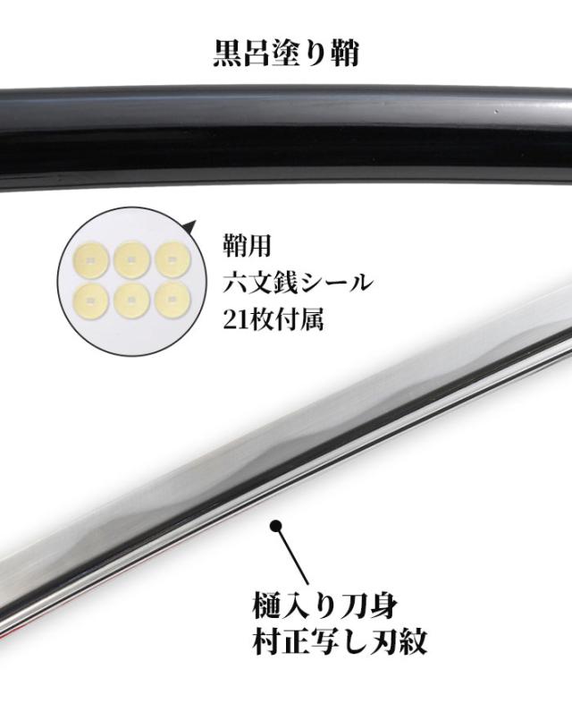日本刀 真田六文 銭黒拵 大刀 模造刀 鑑賞用 刀 日本製 侍 サムライ 剣 武器 レプリカ 幕末時代 おもちゃ お土産 おみやげ プレゼント 外国人 喜ぶ 新選組 新撰組 時代劇 稽古 芝居 お芝居 小道具 玩具 仮装 変装 コスプレ